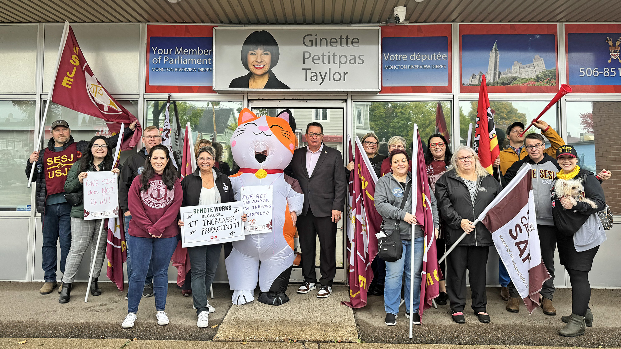 On October 8, the group held a rally in front of the office of Liberal MP, Minister Ginette Petitpas Taylor in opposition to the three-day in-office mandate enforced by Treasury Board at the beginning of September. The Minister’s office confirmed a follow up meeting will take place with USJE representatives to discuss concerns around the mandate. Share your concern by sending a letter to Treasury Board President, Minister Anita Anand.