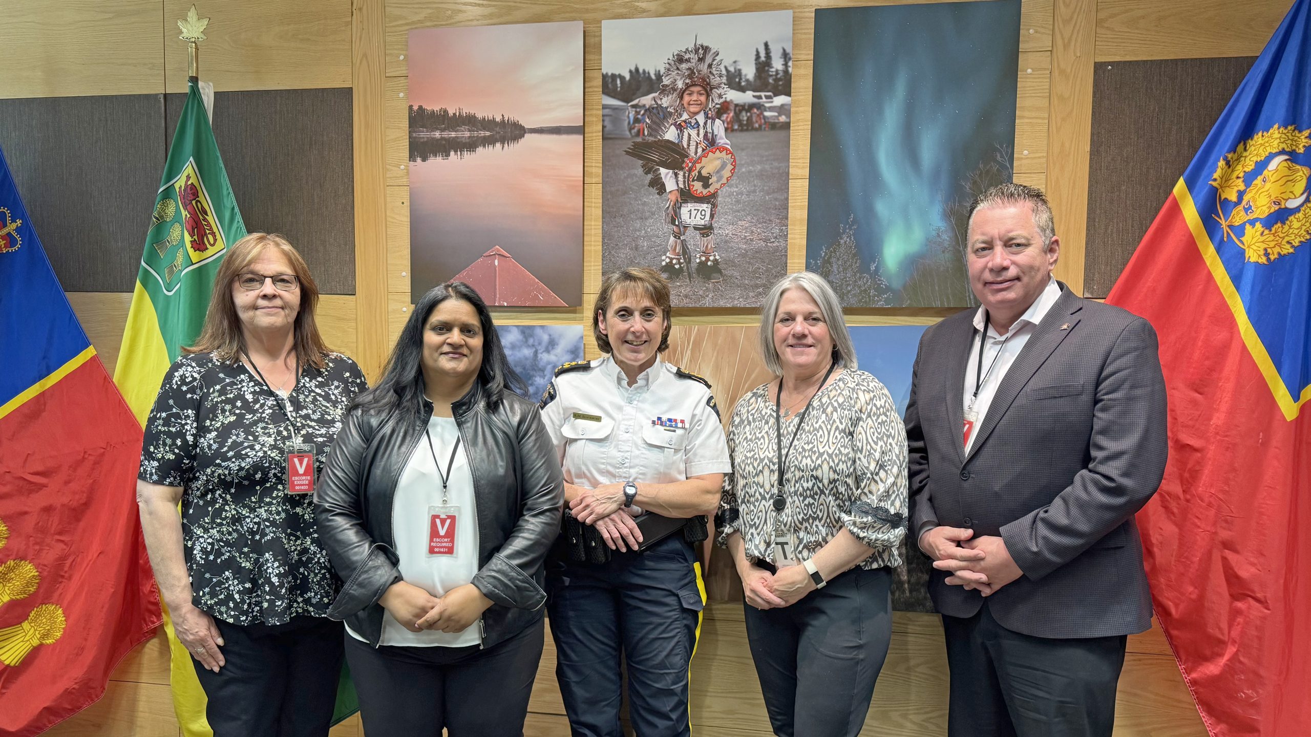 On Friday, May 9th, USJE National President, David Neufeld, USJE National Vice-President, Lynette Robinson, and USJE RVP, Heather McKinnon, were joined by PSAC National President, Sharon DeSousa, and PSAC REVP, Marianne Hladun, in Regina for a visit to the RCMP Depot and F Division Headquarters.