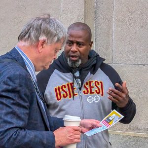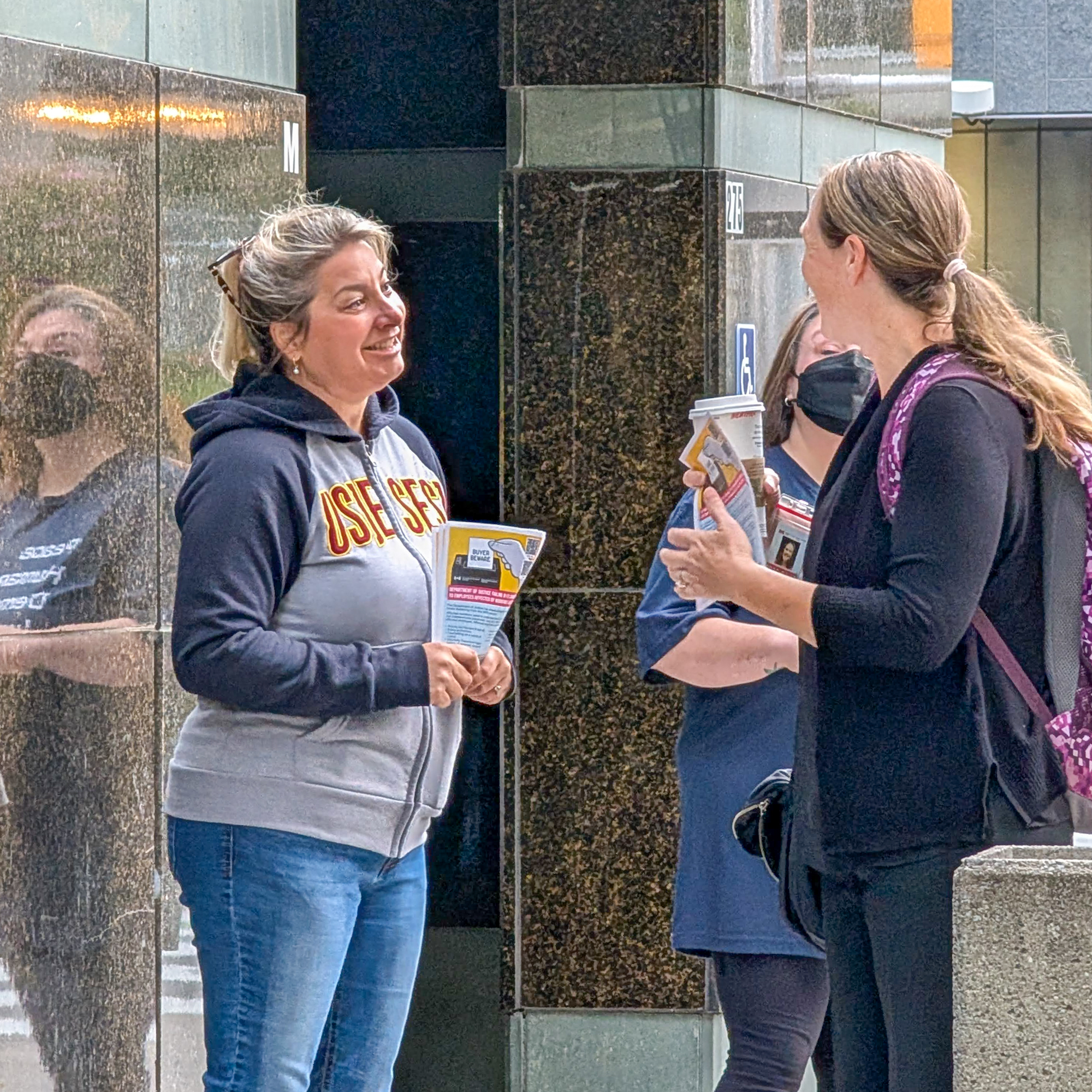 The Department of Justice has already advised that there will be job losses stemming from their WFA process. USJE RVPs handed out flyers and spoke to members about the rights and entitlements of those affected.