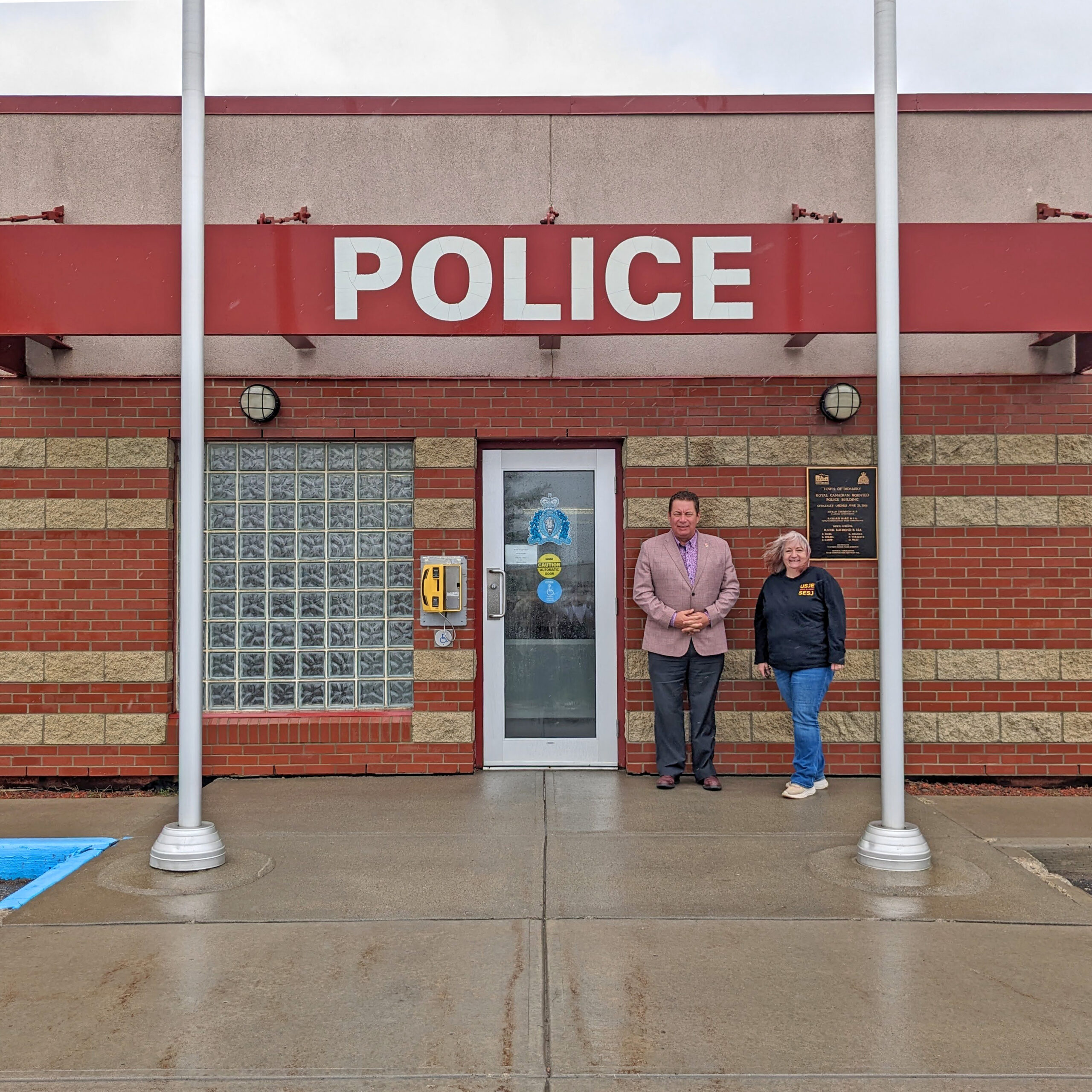 For the second stop in the afternoon, the USJE team visited the Didsbury RCMP detachment. Staff Sargeant Stephen Browne graciously provided a tour of the detachment and shared recent renovations done to make the building more effective for all employees, including separate work areas and privacy screens for the DSAs. Following the tour, the National President and RVP Behrens were able to spend time talking with local members to answer questions and hear their stories and perspectives.