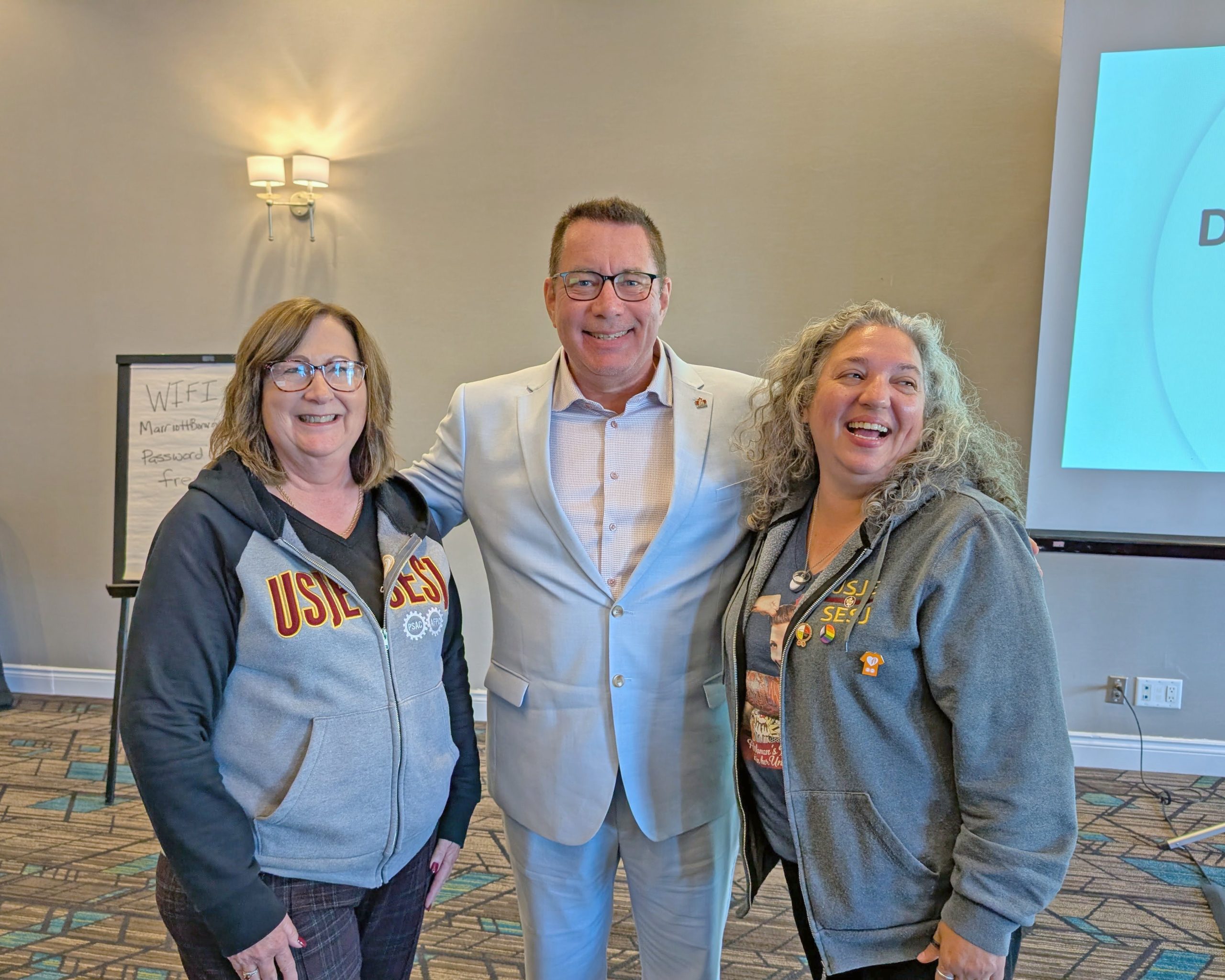 President Neufeld also acknowledged retiring RVP Bill Bailey and his decade-long commitment to union activism. Bill is admired for his thoughtful, caring, and powerful advocacy for all USJE members, and his sharp sense of humour. Bill was met with a standing ovation to recognize his service.