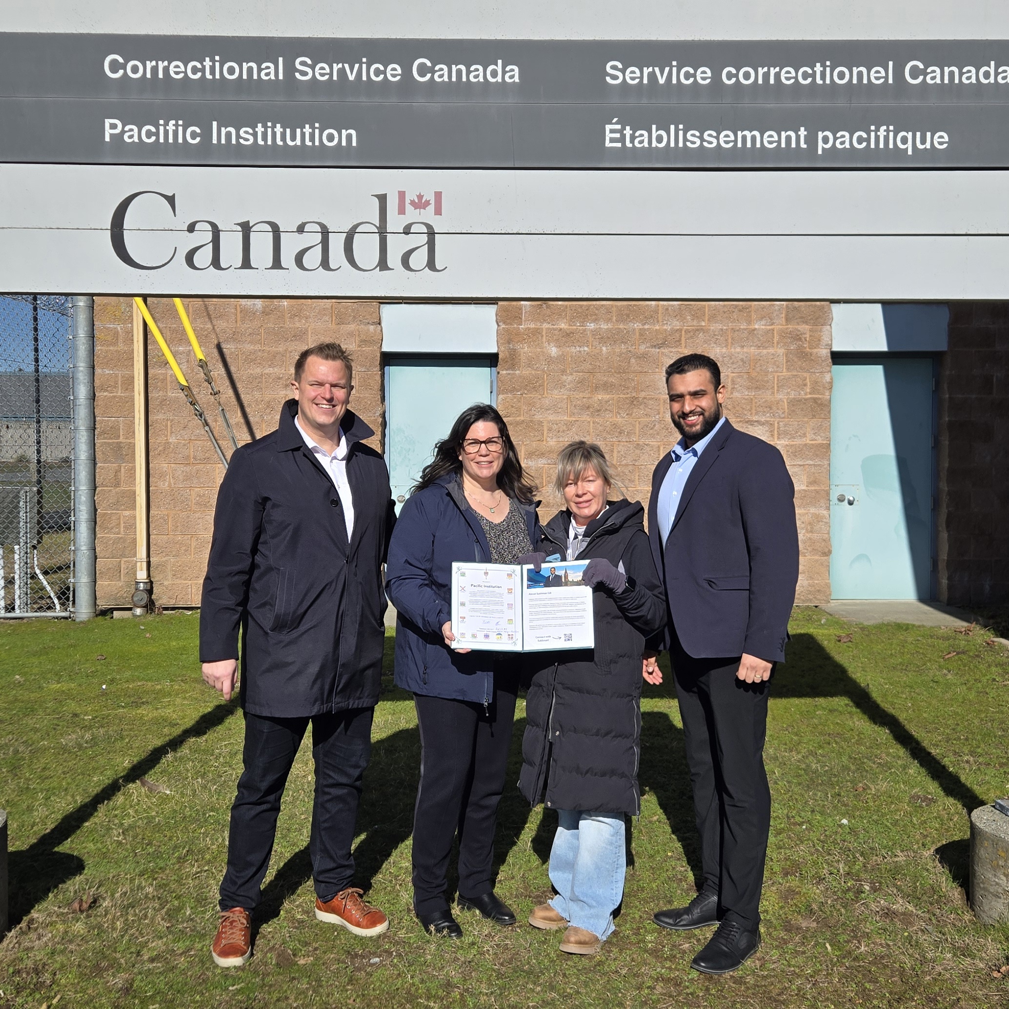 Le 19 février, les députés Sukhman Gill et Brad Vis ont visité l’Établissement du Pacifique, à Abbotsford, en Colombie-Britannique, en compagnie de Kirsty Havard, vice-présidente régionale du SESJ, et de Louise Shibicky, vice-présidente de la section locale 20017.