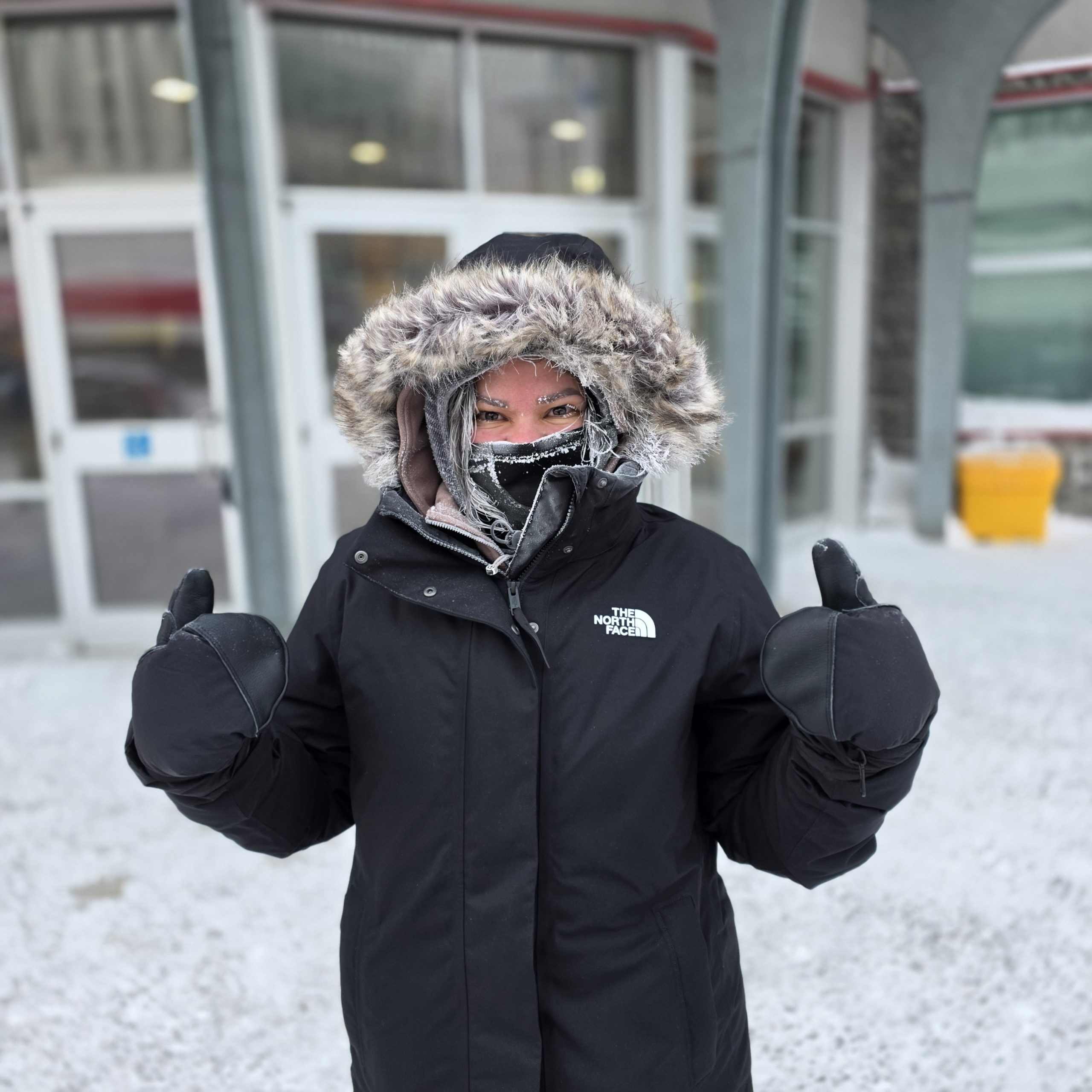 Le coup d’envoi a été donné à 7 h 30, alors que la température était de -37 degrés (-50 degrés avec le refroidissement éolien)! Le rassemblement s’est fait à l’extérieur de l’édifice Greenstone, au centre-ville, où se trouvent des locaux du SPPC et des bureaux de libération conditionnelle de Yellowknife.